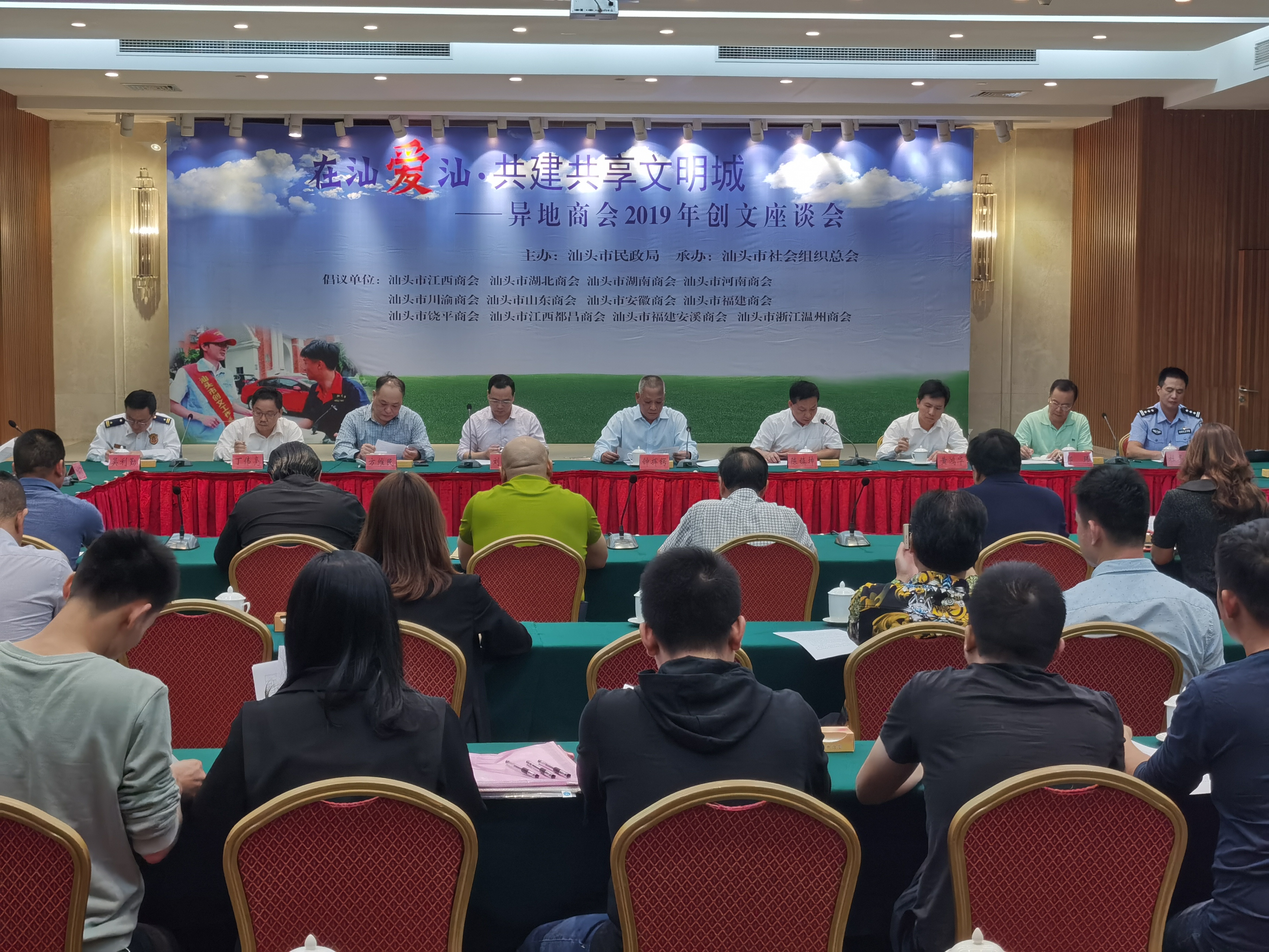 我市召开“在汕爱汕.共建共享文明城”异地商会2019年创文座谈会,是2016我市异地商会创文座谈会、异地商会创文晚会,2017年异地商会文明出行座谈会、2019年我为亚青作贡献等“在汕爱汕”系列活动的延续,具有承前启后、开拓进取的重要意义。此次座谈会,既是对4年多来,异地商会参与创文工作的总结回顾,也是再次吹响创文号角的新起点,是我市创文永远在路上的重要印记。据悉,一直以来,市江西、湖北、湖南、河南等异地商会引领近1000多家会员企业和80余万新汕头人,积极参与全市创文工作,在开展文明交通志愿服务、扶贫济困、助学助教、爱心敬老、消防安全、抢险救灾、卫生清扫、化解矛盾等方面作了大量的工作。市江西、湖南商会被评为国家4A级社会组织。创文中,我市异地商会结合自身特点,成立创文宣传队、志愿服务队,联合外来工子弟学校开展形式多样的创文宣传、发放创文宣传手册和宣传小物品,举办会员企业创文宣讲,为在汕企业参与创文立标杆、树榜样。通过开展文明行业创建活动,达到商会负责人理念信念更加坚定,工作思路更加清晰,改革创新更加有力,工作机制更加完善,管理服务更加到位,事业发展更加科学,推动文明行业创建活动取得实实在在的效果。2018,市江西商会还被评为汕头市文明单位。2019年,我市实施福彩公益金支持新型社会组织公益项目,汕头市江西商会、河南商会2个关于引领提升新汕头人参与创文热度的公益项目得到立项并顺利实施,通过项目推进,异地商会组织创文宣传活动进校园、进企业、进家庭,进一步提升了我市外地人融入创文参与创文的积极性,受到各级党政和社会的肯定。