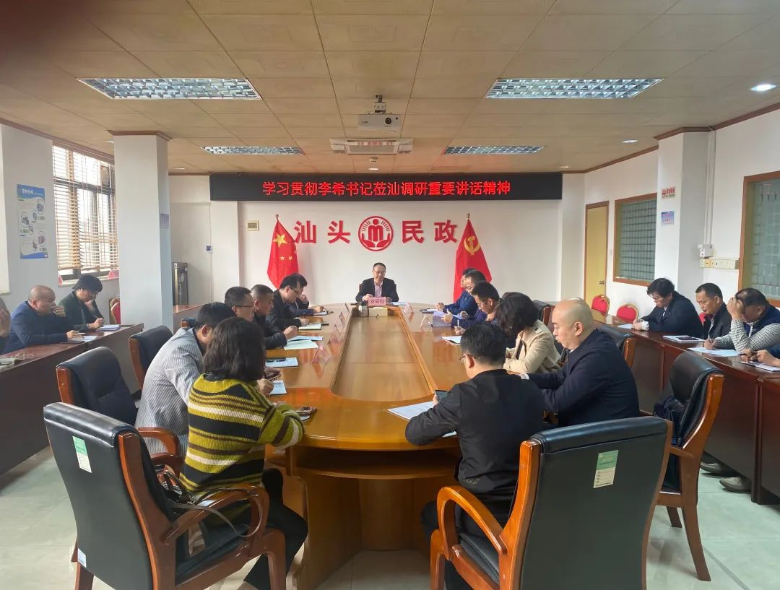 会议强调,李希书记的重要讲话,充分体现了省委省政府对汕头发展的关心厚爱和大力支持,为我们做好汕头工作注入了强劲动力。市级民政系统党员干部要提高政治站位,深入学习领会李希书记重要讲话精神,切实把思想和行动统一到市委的决策部署上来,把智慧和力量凝聚到最新的工作要求上来。 会议要求,学习贯彻李希书记重要讲话精神是市级民政系统当前的重要任务,全市民政干部要牢牢把握李希书记重要讲话丰富内涵,提高政治判断力、政治领悟力、政治执行力,要牢记嘱托、感恩奋进,切实增强实现新定位新目标新任务的使命感、责任感、紧迫感;要增强做好新形势下民政工作的信心和决心,奋力迈好第一步、见到新气象,自觉为把经济特区办得更好、办得水平更高贡献民政力量。 最后,舜煜同志结合近期工作实际,强调三点贯彻落实意见:一是要加强组织领导,在全市民政系统掀起学习贯彻落实的热潮。局班子成员要以上率下,迅速组织学习,确保学懂弄通,学有实效;各基层党组织要迅速开展学习,及时把讲话精神传达到全体干部职工。二是要紧紧围绕市委市政府的决策部署,认真履职尽责,做好年初各项工作,更加坚定自觉履行好党和人民赋予的职责使命。具体抓好:突破民政工作重点难点,巩固拓展脱贫攻坚兜底保障成果同乡村振兴有效衔接,确保困难群众应兜尽兜、全面兜牢;打造民政工作亮点,深化巩固基层社会组织“汕头经验”,深化殡葬改革,培育打造特色慈善服务品牌,发挥品牌示范带动效应;推进民政事业安全发展,严格落实安全生产责任制,持续加强民政领域风险隐患排查整治;统筹做好春节期间疫情防控和困难群众救助关爱工作,确保民政服务对象生命和财产安全。三是要坚持把党的政治建设摆在首位,为服务汕头实现新定位新目标新任务提供坚强的政治保证和组织保证。要进一步增强“四个意识”、坚定“四个自信”、做到“两个维护”,推动习近平新时代中国特色社会主义思想学习往深里走、往实里走、往心里走,以优异的成绩迎接党的二十大胜利召开! 局党组成员、其他处级领导同志,各科室和直属单位主要负责同志参加会议。