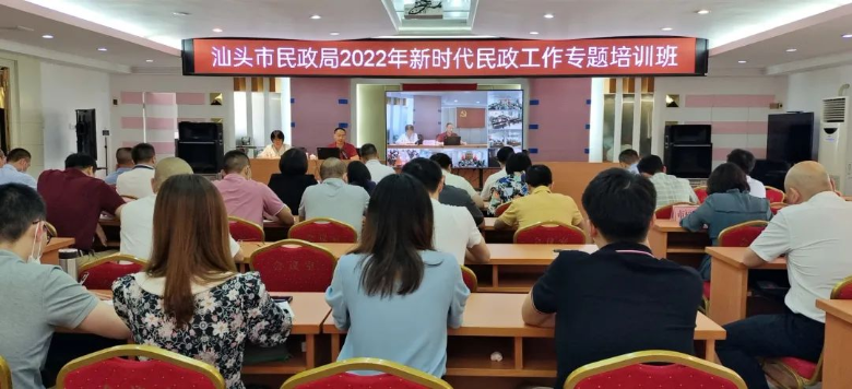为全面贯彻落实汕头市第十二次党代会关于“实施干部政治能力和专业能力‘双提升’行动”的工作安排,根据市委统一部署,在省民政厅的指导和支持下,市民政局于2022年5月23日至26日举办“新时代民政工作专题培训班”。