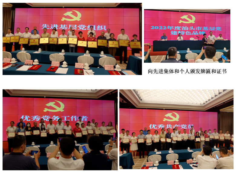 6月30日下午,市社会组织党委在龙湖宾馆召开学习贯彻广东省第十三次党代会精神暨“七一”表彰会议,会议邀请广东省第十三次党代会代表曾爱东就学习贯彻省第十三次党代会精神作辅导报告,邀请邹仰松副教授作习近平法治思想专题辅导。会议向获得市社会组织党委表彰的15家先进基层党组织、25名优秀共产党员和15名优秀党务工作者颁发牌匾和证书,向获得2022年度汕头市基层党建特色品牌的社会组织党支部颁发牌匾。市民政局副局长、市社会组织党委书记刘勤裕参加会议并提出具体要求。市社会组织党委副书记胡进辉主持会议,市级各社会组织党支部书记、党务工作者、党员、入党积极分子近100人参加会议。