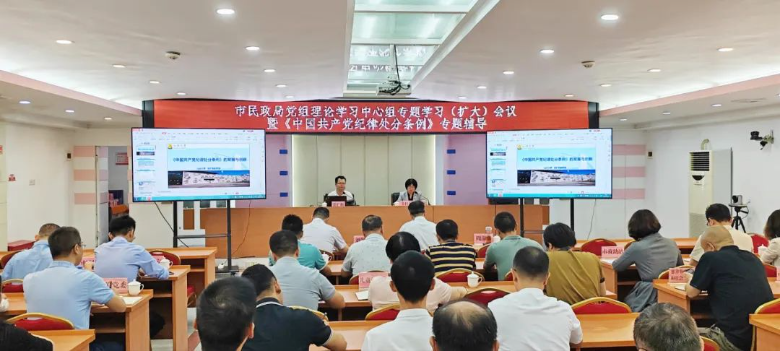 为坚决贯彻落实总书记关于党纪学习教育的重要讲话和重要指示精神,深入学习《中国共产党纪律处分条例》(以下简称《条例》),推动党纪学习教育走深走实,5月21日上午,市民政局召开局党组理论学习中心组专题学习(扩大)会议暨《条例》专题辅导。受局党组书记、局长李珩同志委托,由局党组成员、副局长周淑如同志主持会议并作讲话。专题辅导邀请汕头大学法学院副教授,武汉大学法学博士、硕士研究生导师张扩振进行授课。
