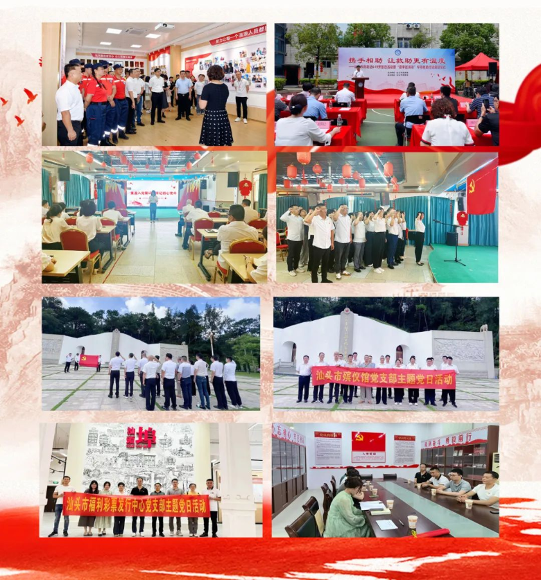 为庆祝中国共产党成立103周年,市民政局机关党委组织开展“弘扬伟大建党精神 感恩奋进新征程”庆祝中国共产党成立103周年主题活动。活动中,通过开展专题学习、党建成果展示、重温入党誓词、慰问老党员、颁发“光荣在党50年”纪念章等环节,弘扬党的光辉历程和伟大成就,激发党员干部职工爱党爱国热情。 牢记嘱托学思想,感恩奋进铸忠诚 各党组织巩固拓展学习贯彻习近平新时代中国特色社会主义思想主题教育成果,扎实开展党纪学习教育,学习贯彻习近平总书记“7·9”重要讲话精神,采取“集中学习+研讨交流+个人自学”学习模式,举行局党组理论学习中心组专题学习(扩大)会议、读书班、辅导报告、知识竞赛等活动,教育引导党员干部深刻领悟“两个确立”的决定性意义,坚决做到“两个维护”,始终做习近平新时代中国特色社会主义思想的坚定信仰者和忠实实践者。 创先争优勇担当,乘势而上谋发展 在中国共产党成立103周年来临之际,汕头市民政局直属机关党委被市委评为“汕头市先进基层党组织”,汕头市民政局社管社救党支部被市直机关工委评为“汕头市直先进基层党组织”,汕头市福利院杜炫同志被市直机关工委评为“汕头市直优秀共产党员”。这些荣誉激励了市民政局各级党组织和党员干部学习先进、崇尚先进、争当先进,为推进中国式现代化的汕头实践贡献民政力量。 “民政党建工作成果展示”活动 以“汕头市机关党建成果展示交流活动”为契机,收集我局近年来通过党建引领取得的工作成效,讲好民政故事。特别在“汕头呼援通”、绿色殡葬、救助寻亲、关爱困难群体、社会组织助力“百千万工程”建设、慈善帮扶等民政领域中总结经验成绩,以图片文字的形式在小公园开埠区党群服务中心进行展示宣传。 “我是党员我宣誓”重温党的光辉历程 局机关党委组织各党支部到红色教育基地开展“我是党员我宣誓”活动,各党支部结合实际通过采取举行党员重温入党誓词、讲红色故事等形式,教育引导党员干部回顾和感悟党的奋斗历程和光辉业绩,继承和发扬党的光荣传统,以实际行动彰显党员力量、擦亮先锋本色。 组织开展党内关爱帮扶和颁发“光荣在党50年”纪念章 落实落细关爱老党员工作,建立关爱老党员工作台账,组织对老党员和优秀党员进行走访慰问,传递党和政府的亲切关怀,切实增强党员的荣誉感、归属感、使命感。同时,扎实做好符合条件党员的全面摸查、核实表现、征求意见、公示公告、集体讨论、申报申领等工作,7月1日前,组织做好“光荣在党50年”纪念章的颁发,确保党员深切感受到以习近平同志为核心的党中央的关怀和温暖。