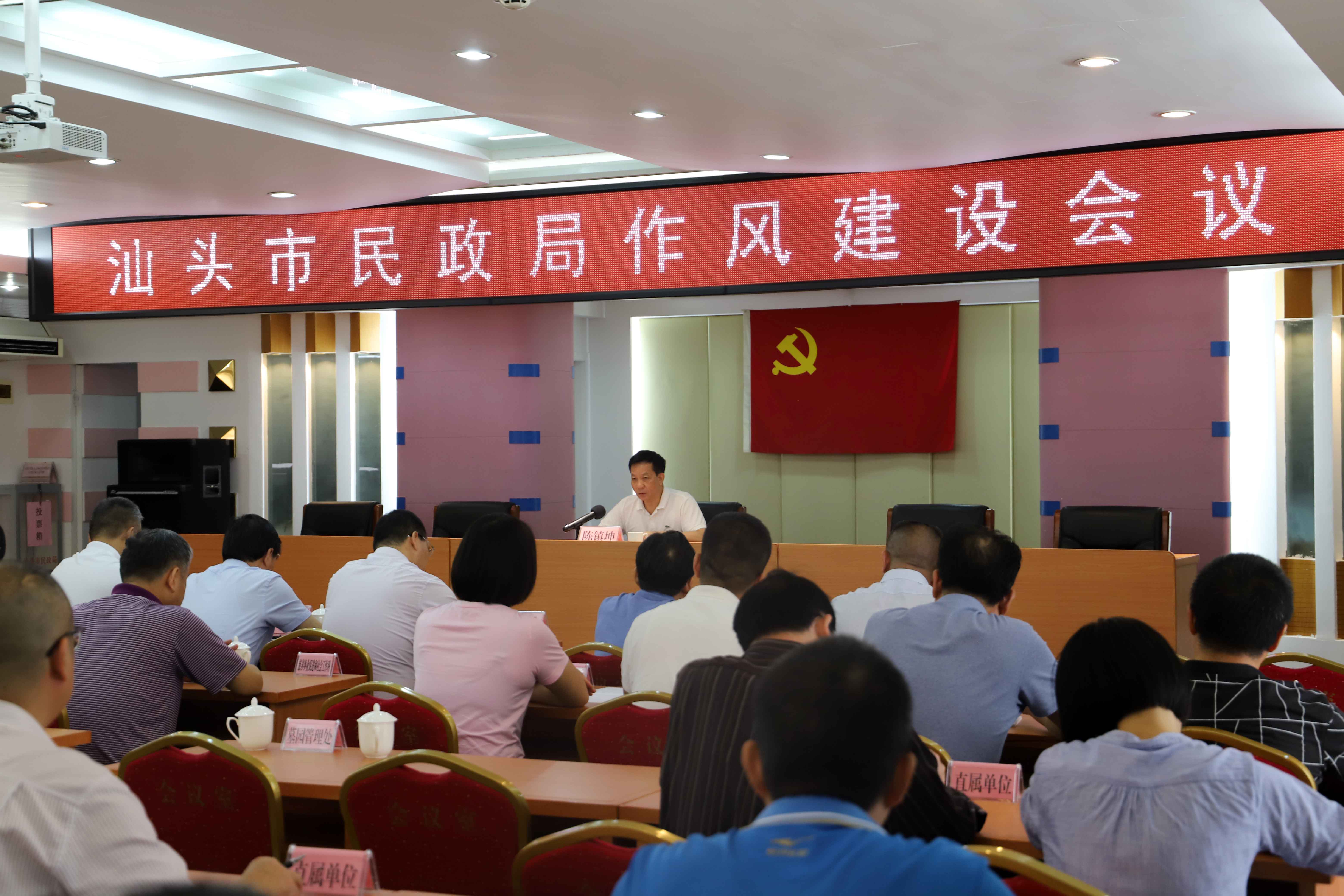 2019年8月1日上午,市民政局召开作风建设会议,传达学习贯彻全市作风建设大会精神,部署市民政系统作风建设和党建工作。市民政局机关全体干部,直属单位班子成员参加了会议。党组书记、局长陈镇坤同志传达了7月31日全市作风建设大会精神,分析研究当前民政系统作风建设形势,查摆自身存在的问题,以作风建设为抓手,激励民政系统全体党员干部以新担当新作为,奋力推进汕头民政事业在新起点上实现高质量发展。