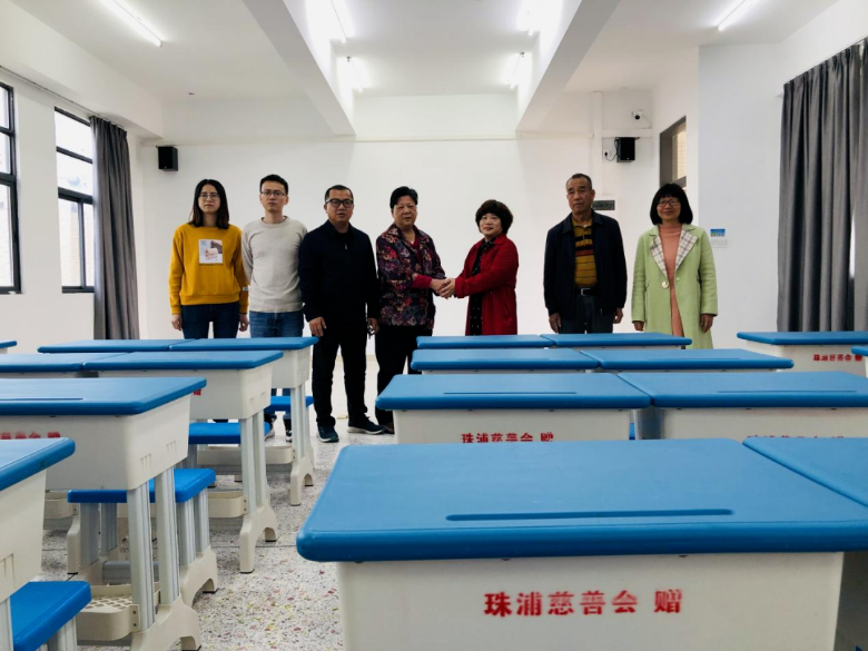 发动乡贤为学校捐赠课桌椅