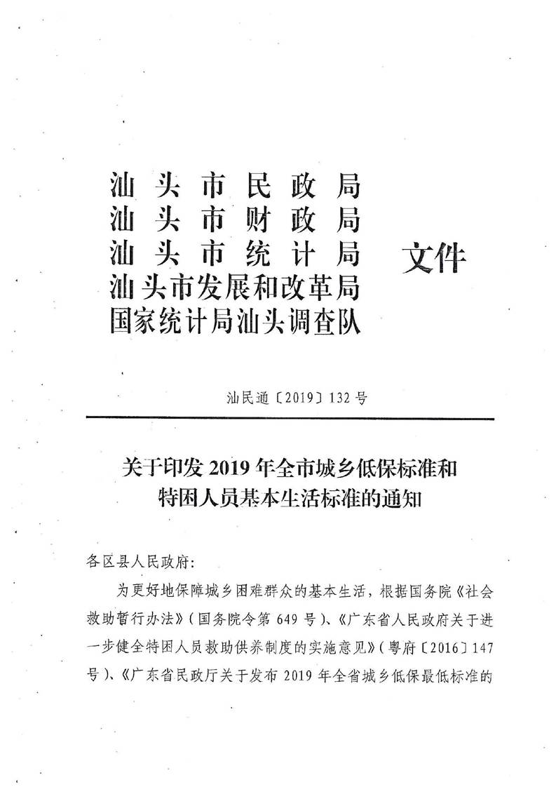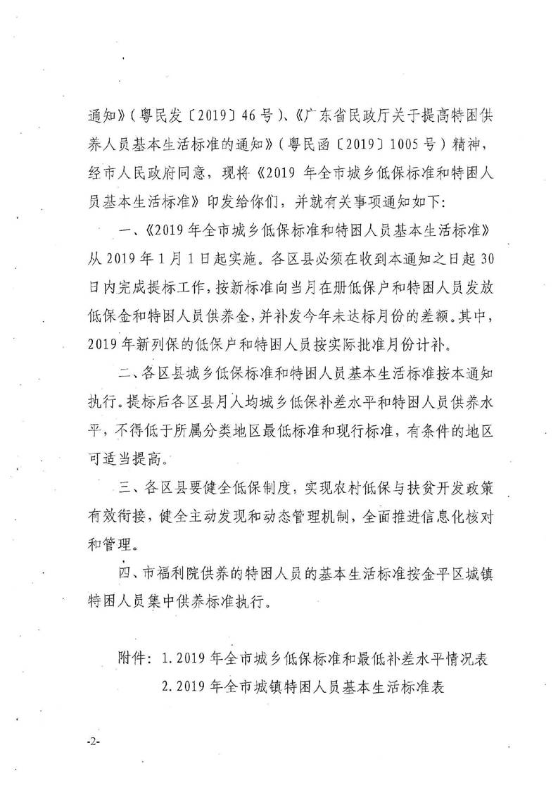 关于印发2019年全市城乡低保标准和特困人员供养标准的通知