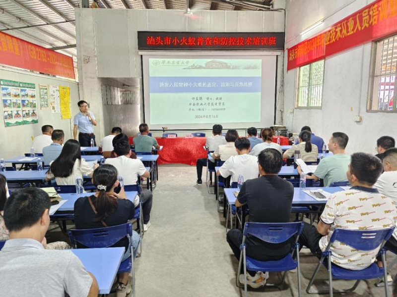 小火蚁是世界自然保护联盟认定的世界100种最危险的入侵物种之一,一旦入侵定殖将对人体健康、农业生产和生态环境造成危害。为防止小火蚁入侵扩散,进一步提高外来物种普查员的业务能力,8月16日,市农业农村局分别在潮南区浩顺种植专业合作社和潮阳区农业农村局举办小火蚁普查和防控技术培训班暨农业科技从业人员培训班(第三期),来自各个镇街相关工作人员和外来物种普查员80多人参加培训。