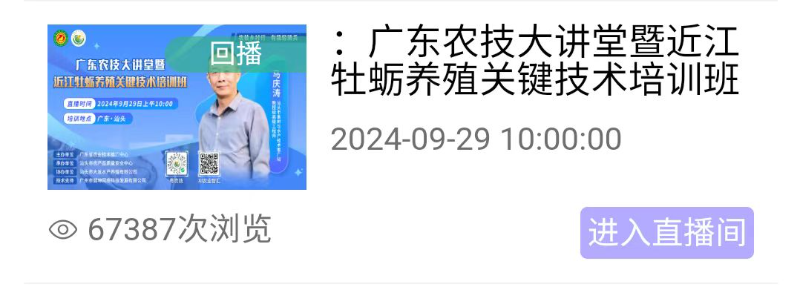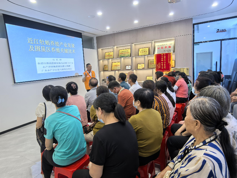 培训班特邀汕头市果树与水产推广站教授级高级工程师为学员授课,重点讲解了近江牡蛎围垦区高效养成及育肥技术,详细介绍了我市近江牡蛎养殖关键技术以及牡蛎养殖产业规划,现场分享了示范实践经验,以实用的应用技术指导生产,积极推动本地牡蛎养殖业绿色健康发展。生蚝养殖从业人员、农业技术推广人员、乡土专家代表等40余人参加了培训。同时,本次培训也创新了模式,把课堂同步搬上“云端”,通过AI农业智汇、粤农技视频号等线上平台进行直播,点播人数超6.7万人次。