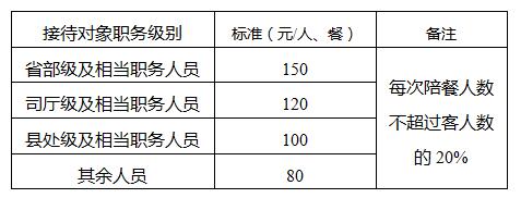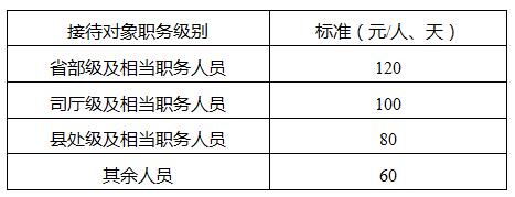 (二)会议(含业务培训)经费标准:会议代表伙食费每人每天100元(早餐20元,中餐40元、晚餐40元),住宿费每人每天100元(会议所在地人员不安排住宿),会议工作人员人数按会议代表的10%核定。