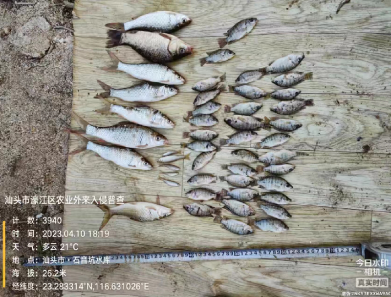 在专家组的指导下,普查组根据河段流域、水库特点,选取3-5个点作为捕捞点进行捕鱼作业,根据广东省普查工作专家组提供的基本鉴定图册鉴定所捕捞到的入侵物种特征、物种在样方内的占比,并做了详细的记录、留取照片。截至目前为止,全市六区一县均已完成外来入侵水生物种踏查现场调查工作,已普查识别的外来入侵物种均已建立图文资料信息档案。