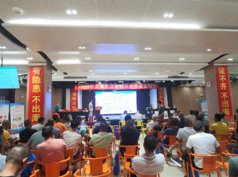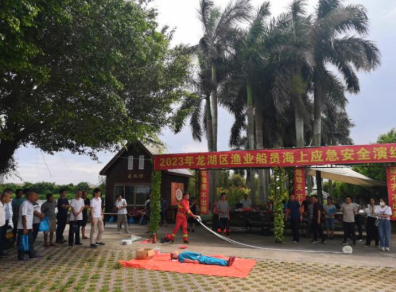 为进一步加强渔船安全生产管理,遏制渔船安全事故发生,7月31日,龙湖区农业农村局组织辖区内渔业从业人员,分别在澄海区宝奥城渔业船员培训基地、龙湖区绍河珍珠科技园,开展渔业从业人员安全培训及应急演练活动。汕头市海洋综合执法支队派出业务骨干进行现场指导。龙湖区农业农村局、珠池、妈屿街道及居委渔业管理工作人员和渔业从业人员等约150人参加了本次活动。