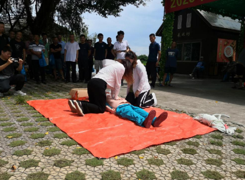 应急演练活动中,培训人员向学员演示了船员落水如何急救,带领参训人员学习对溺水人员如何进行心肺复苏、人工呼吸等应急救援技能。活动现场还演示了灭火器的操作、使用,并随机邀请两名学员按照“一提、二拔、三描、四压”的操作要领“零距离”体验灭火过程,做到理论与实际结合。