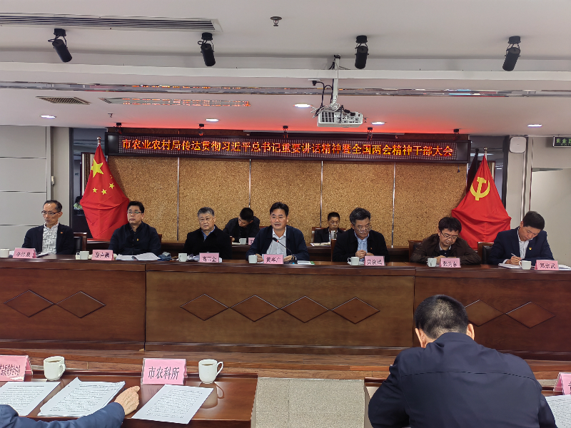 3月18日上午,市农业农村局召开干部大会,传达学习习近平总书记在全国两会上的重要讲话精神和全国两会精神,以及全省、全市传达贯彻习近平总书记重要讲话精神暨全国两会精神干部大会精神,全面部署贯彻落实工作。