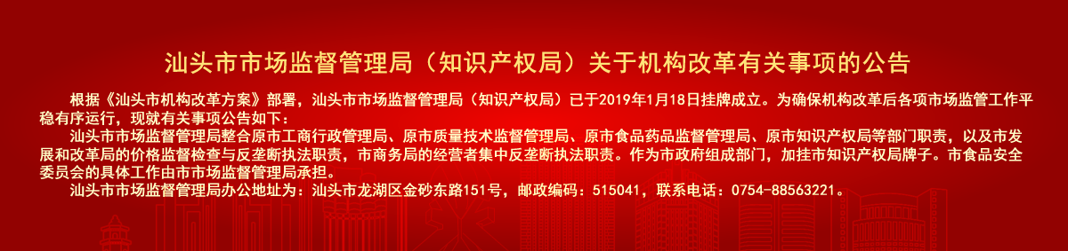 您访问的链接即将离开“汕头市市场监督管理局(知识产权局)门户网站”,是否继续?