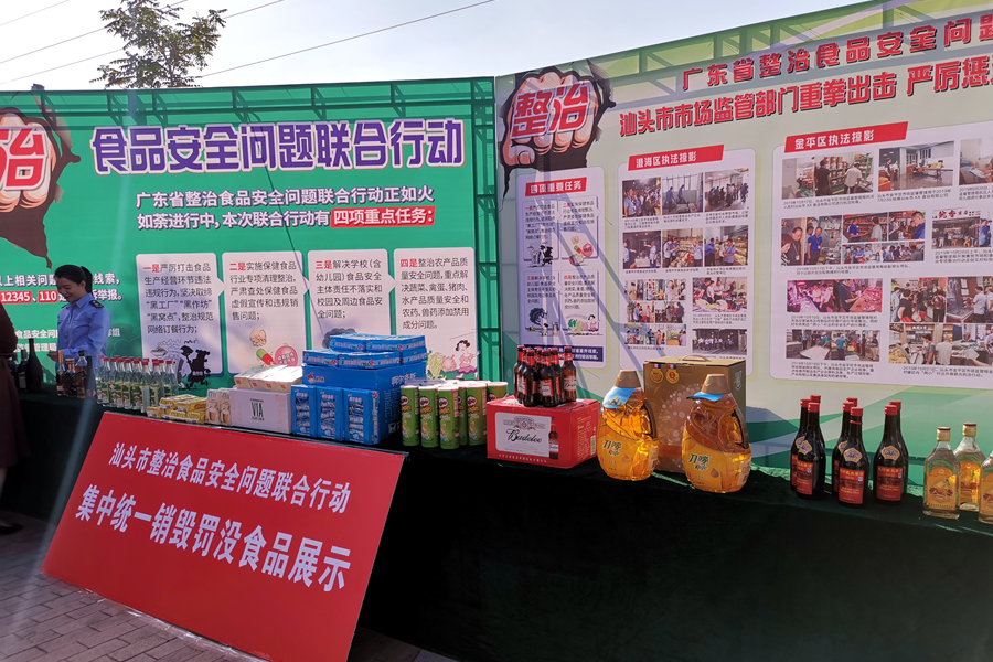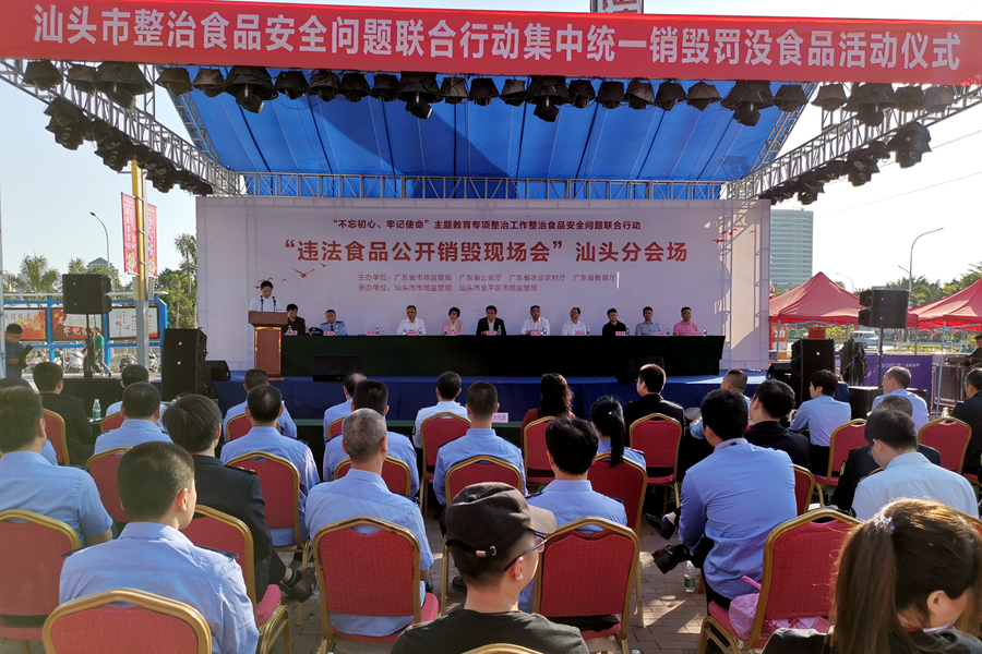 根据全省整治食品安全问题联合行动部署要求,11月20日,汕头市市场监管局、金平区市场监管局在万达广场举行违法食品集中统一销毁活动仪式。市政府副秘书长洪悦浩、省市场监管局粤东市场稽查办公室主任刘鹏、市市场监管局局长林健,金平区政府及市纪委、市场监管、公安、农业、教育、环保等部门有关负责同志,市、区两级部分人大代表、政协委员参加活动。市市场监管局副局长郑泳麒主持活动。