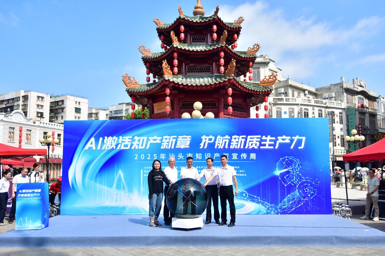 护航新质生产力”2025年汕头市知识产权宣传周活动在汕头小公园中山纪念亭正式启动。本次活动由市市场监督管理局(知识产权局)、市文化广电旅游体育局、市版权局主办,市知识产权保护中心、市投资控股集团有限公司、广东省版权基层工作站(汕头)承办,金平区人民法院、中国移动汕头分公司、市旅游投资有限公司、市律师协会协办,本次活动旨在响应国家知识产权局号召,大力宣传“尊重知识、崇尚创新、诚信守法”为核心的知识产权文化,推动AI技术在专利分析、版权管理、商标保护等领域加大应用,持续提升知识产权公共服务利企便民水平,为汕头加快知识产权强市试点城市建设营造良好舆论氛围。市有关单位领导、负责同志和小公园商户代表共50多人参加启动仪式。