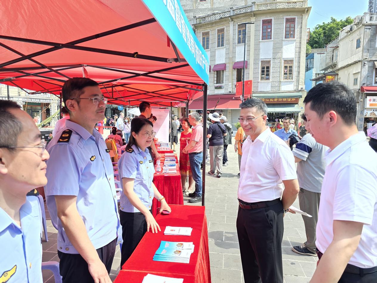 活动现场推出“知识产权宣教集市”,由各有关单位以摆摊设点的方式,通过典型案例宣讲、播放宣传视频、知识产权有奖竞答、发放宣传手册等形式,为市民群众提供商标注册、文旅非遗、版权登记、地标产品、法律服务等宣教咨询,打造沉浸式知识产权科普空间。同时,为深入推进“一窗通办”服务效能,市知识产权保护中心和广东省版权基层工作站(汕头)在现场开展商标和版权业务受理服务,对商标注册申请和版权作品登记的基础知识、注意事项及业务流程进行讲解指导,将受理窗口搬到群众“家门口”。