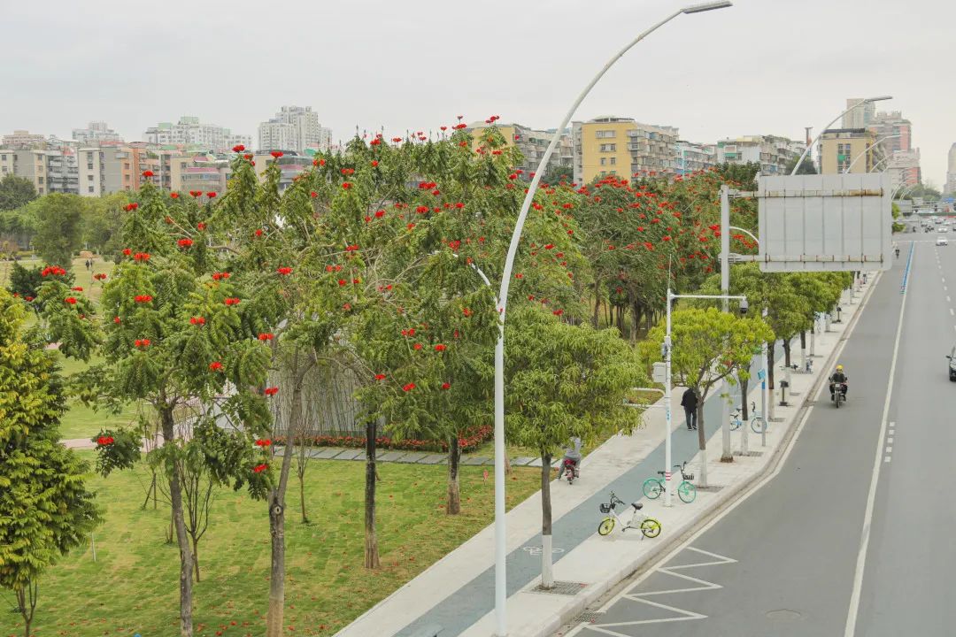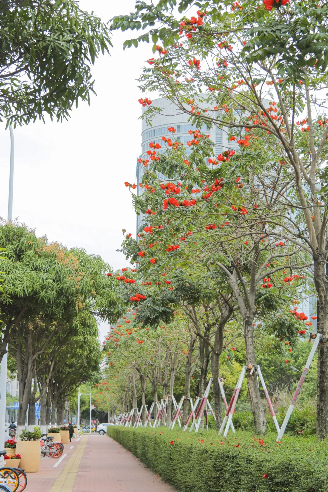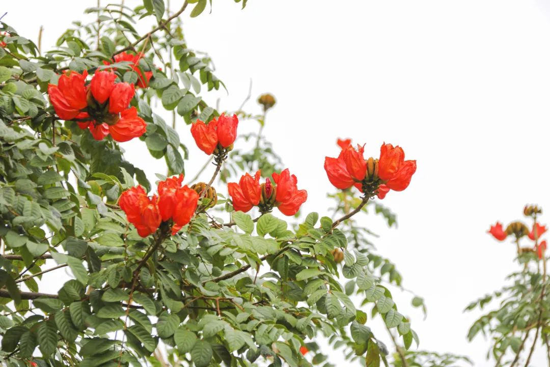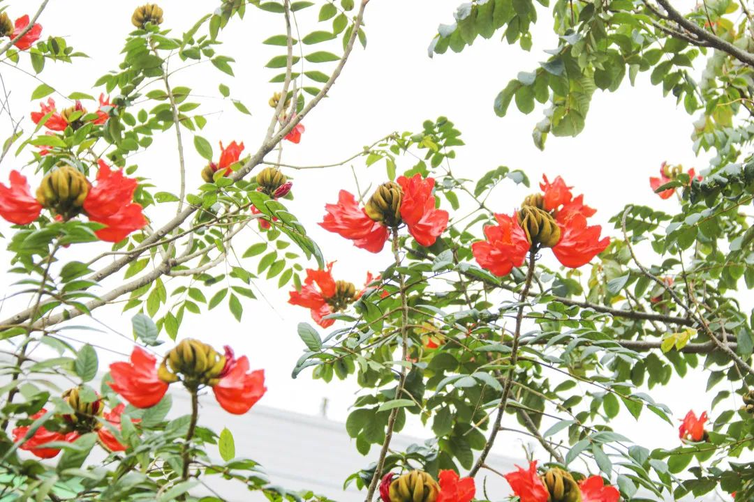 到了3月后,它们的花朵便肆意开放,像一团团火焰的在枝头天际间燃烧时,才会发现,一排排傲然屹立的树木没有辜负自己的姓名,真是如同熊熊燃烧的火焰般挂在天空,好生壮观。
