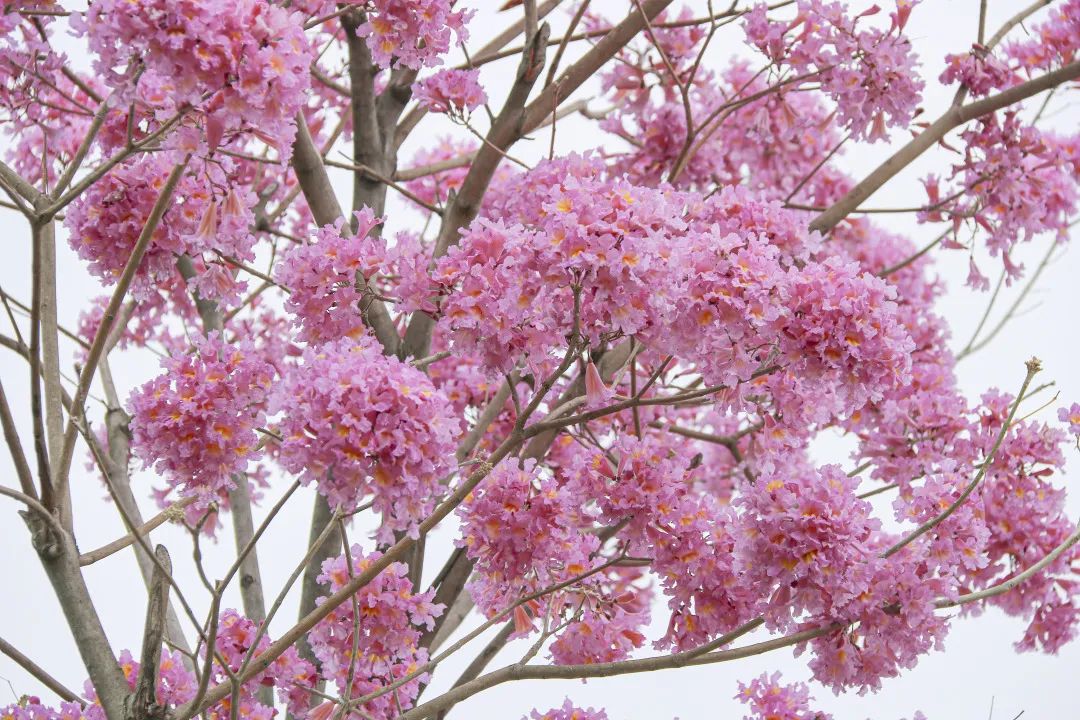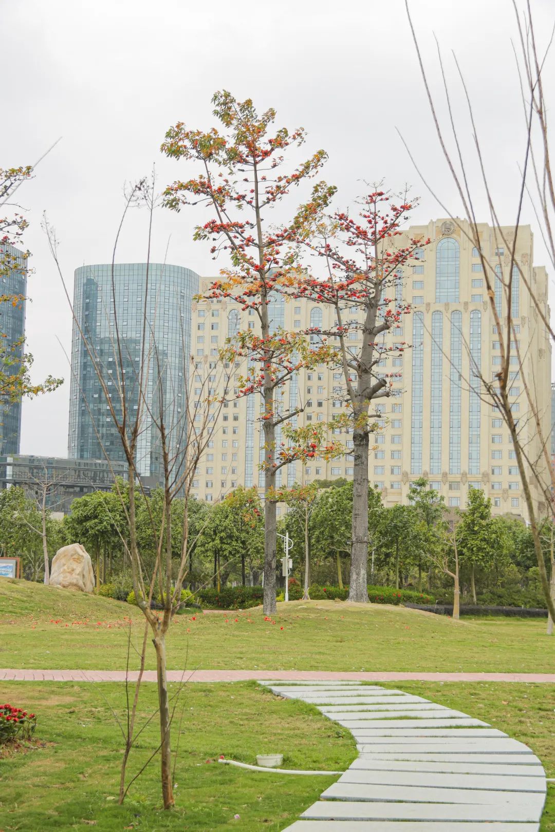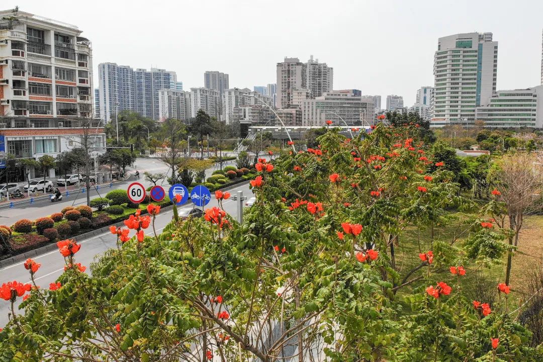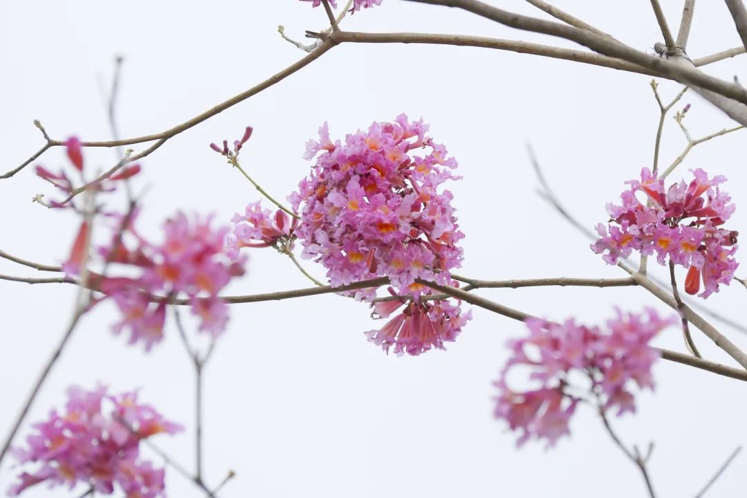 桃花、风铃木、火焰木、木棉花等花卉竞相开放
