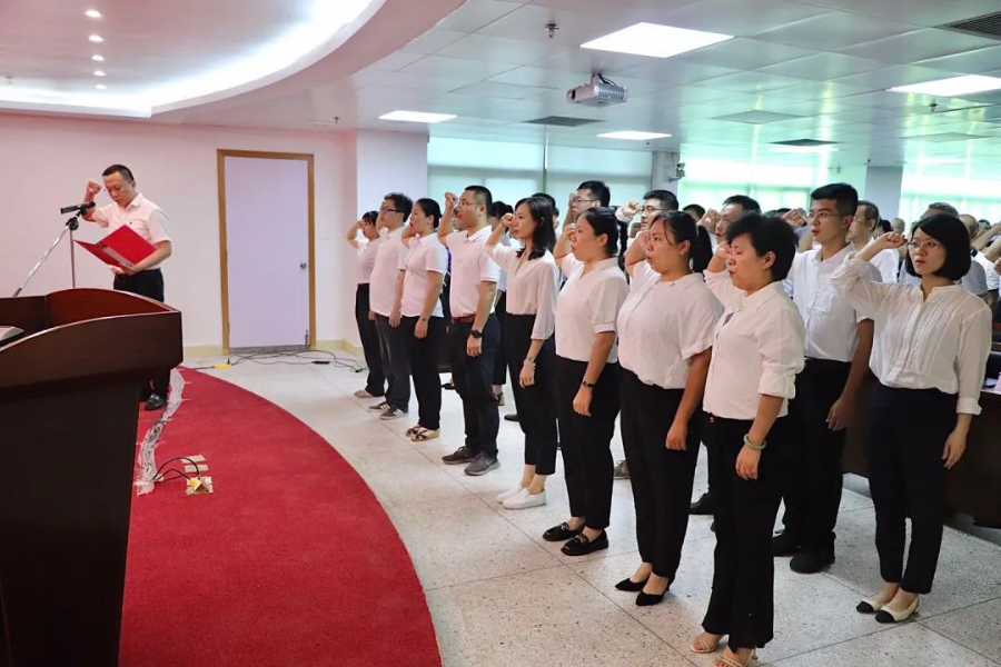 活动首先举行了“七一”入党宣誓仪式,奏《国际歌》后,局系统新党员面向党旗宣誓,现场全体党员高举右拳重温入党誓词。宣誓仪式庄严、意义深刻,既是新党员对加入中国共产党的一次庄重承诺,也是全体正式党员对入党初心使命的再回顾,激励大家做合格党员,勇当城市管理工作排头兵。