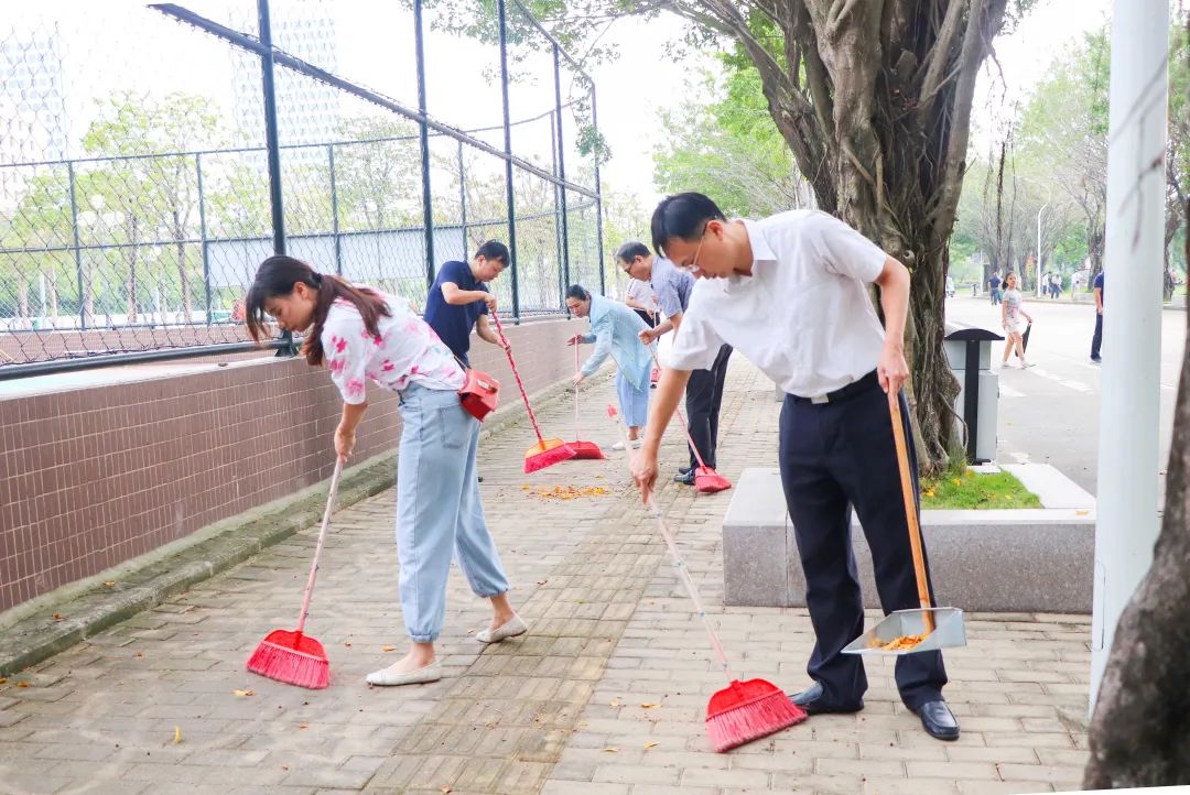 9月5日上午,市城管局领导和局机关工作人员前往时代广场参加义务劳动。在劳动现场,大家头顶烈日,手拿扫帚、簸箕、铁夹等清扫工具,对时代广场步道及树穴等进行仔细清洁清理,包括清扫地面垃圾,清理烟头、纸屑等杂物,清除卫生死角等。