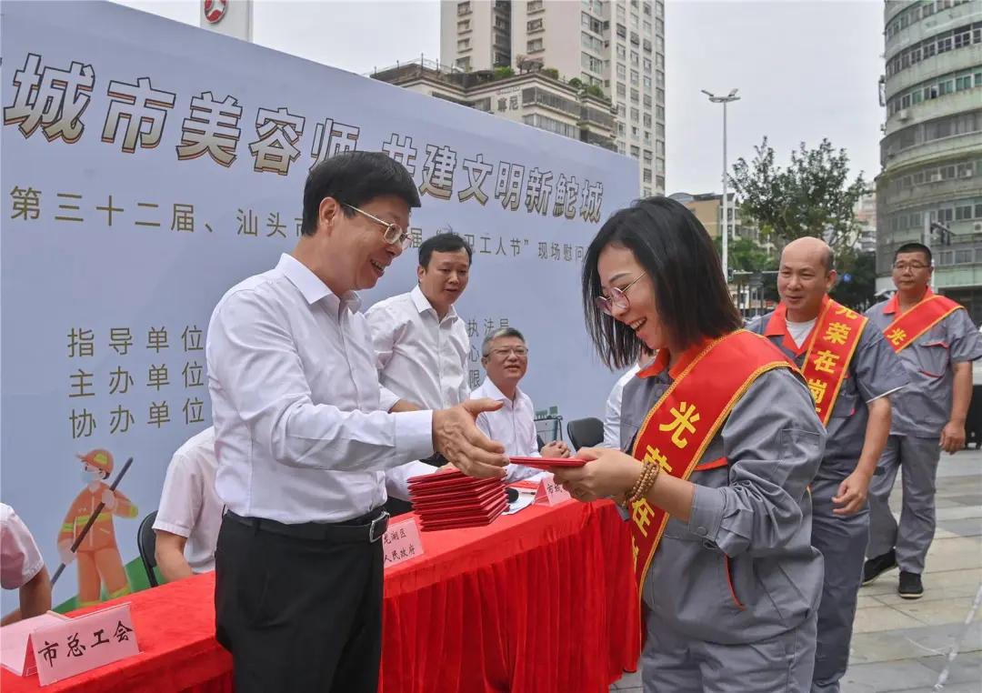 本次活动主题为“致敬城市美容师 共建文明新鮀城”,由市城管局指导,市环卫中心主办,市合胜商业管理有限公司协办。活动向从事环卫工作满25年的职工代表佩戴绶带并颁发荣誉证书,向环卫工人代表发放大米、食用油、消费券、电影票等节日慰问品,并邀请环卫工人代表前往汕头合胜广场长平店美食广场享用汕头美食。