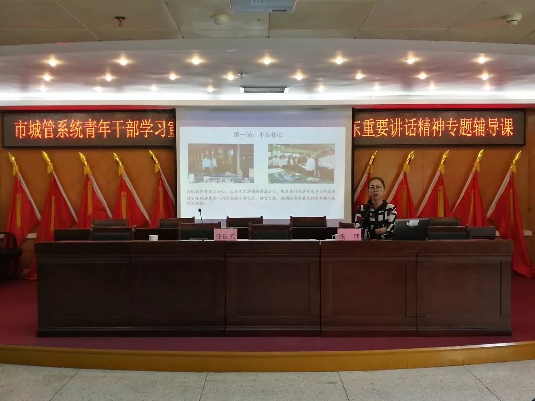 课上,张玮老师以“改革开放永不停步”为主题,围绕习近平总书记视察广东的时代意义、精神要义以及真抓实干、落实好习近平总书记重要讲话精神三方面,引经据典、深入浅出地为大家讲授了一堂精彩的专题辅导课,给城管青年干部深入领会习近平总书记视察广东重要讲话精神、用重要讲话精神指导实践、统领工作提供了有力的理论指引,进一步坚定了城管青年管理好城市、服务好市民的信念和决心。