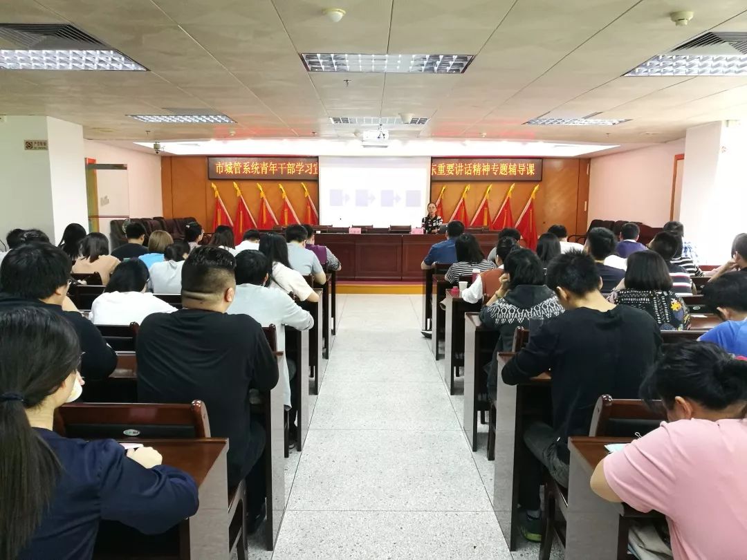 为进一步深入学习宣传贯彻习近平总书记重要讲话精神,突出学习宣传的“广度、深度、温度”,市城管局以局系统35周岁以下青年干部为培训对象,于11月16日上午举行了市城管系统青年干部学习宣传贯彻习近平总书记重要讲话精神专题培训课。培训由市城管局任振威副调研员主持,邀请市委党校张玮老师主讲,市城管系统近90名青年干部参加了学习。