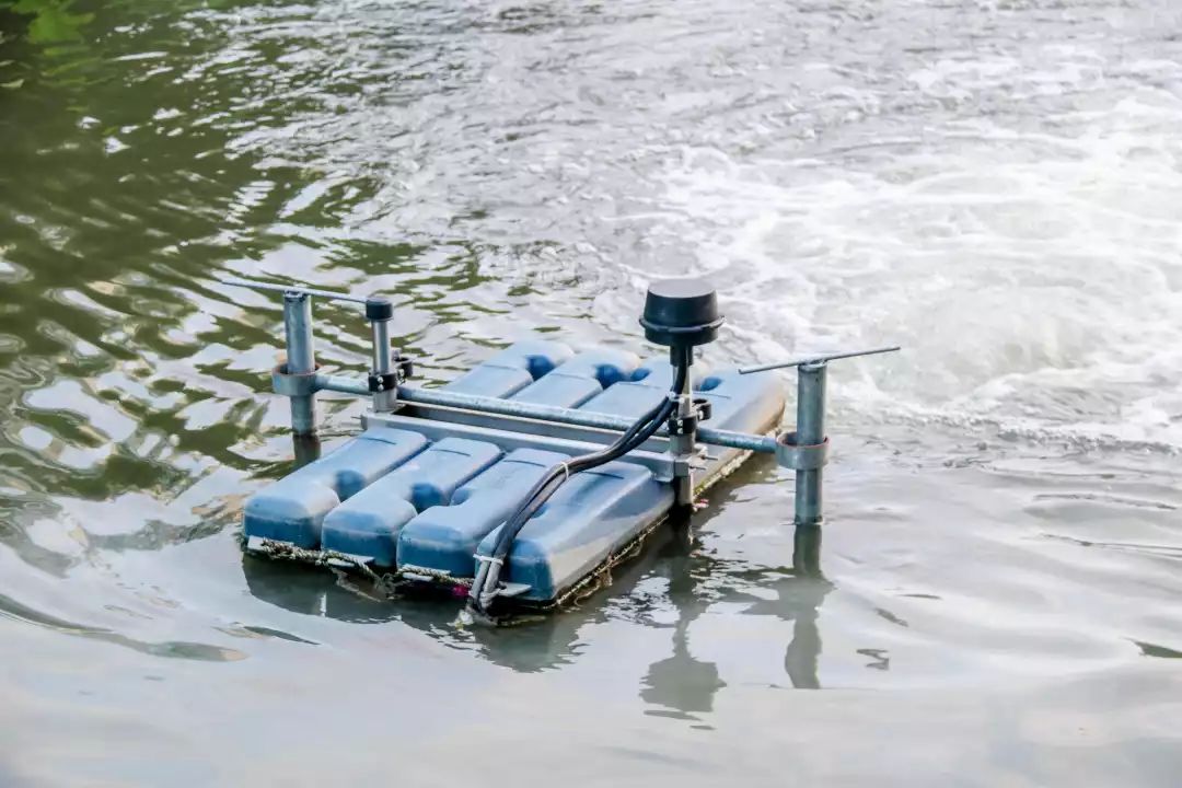 此次“四沟”治理,共安装76台爆气机,利用人工机械方法对水体充入氧气或者空气以提升水体中的溶解氧水平,使水体由缺氧转变为富氧,抑制厌氧微生物生长,促进好氧微生物的繁殖,对水中的有机物进行好氧分解,同时氧化NH3-N、FeS、H2S等物质,提升流域溶解氧,改善水域环境,形成水循环流动状态。