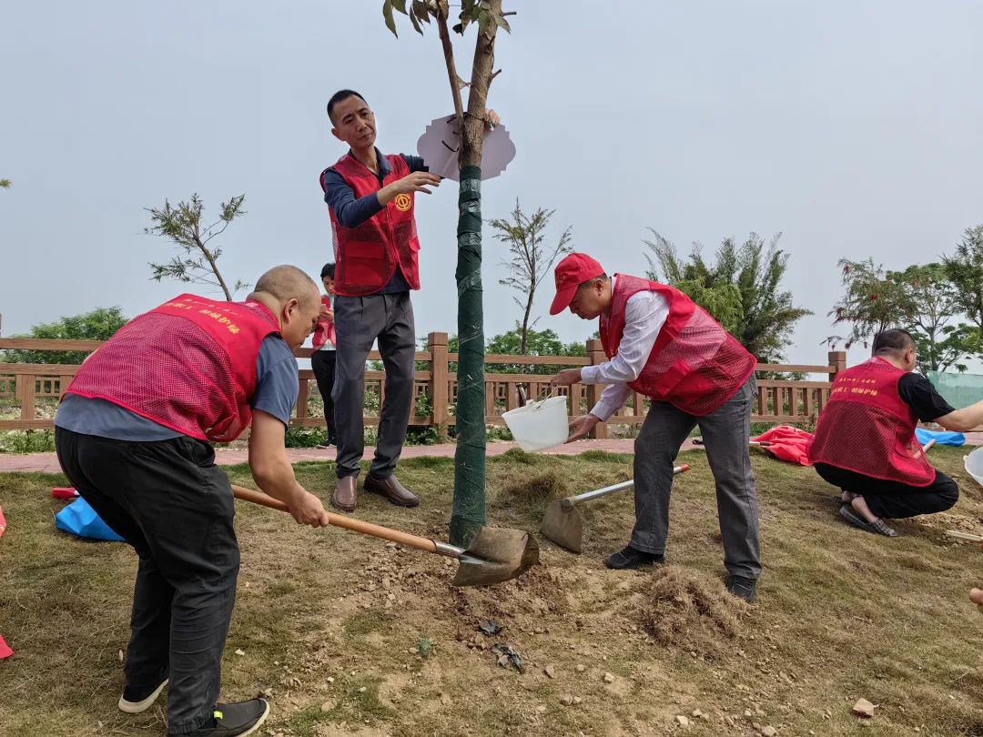活动现场,党员干部职工两、三人一组相互配合、协同合作,挥锹铲土,挖坑培苗,扶树填土,培土浇水,分工明确、配合默契,共同完成了植树工作。经过大家齐心协力的劳动,新栽树苗迎风而立,展现出勃勃生机,为华里党建公园增添一片新的绿意。