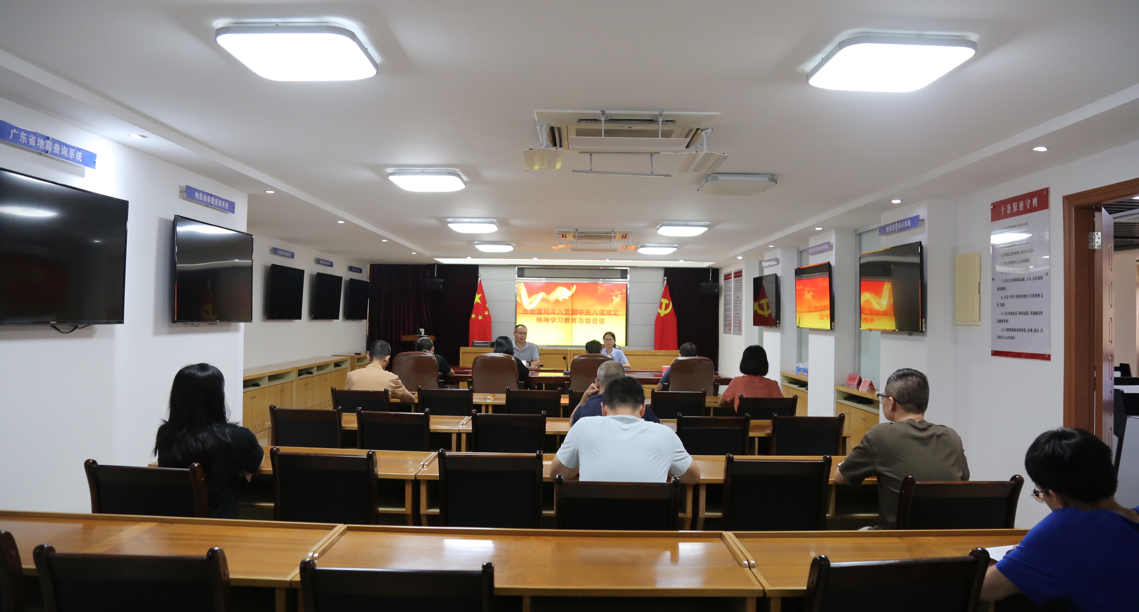 9月23日,市地震局召开深入贯彻中央八项规定精神学习教育总结会议,传达学习习近平总书记重要指示精神,传达学习中央党的建设工作领导小组会议精神及省委、市委有关会议精神,总结我局深入贯彻中央八项规定精神学习教育开展情况,研究部署巩固拓展学习教育成果、锲而不舍落实中央八项规定精神、推进作风建设常态化长效化工作。