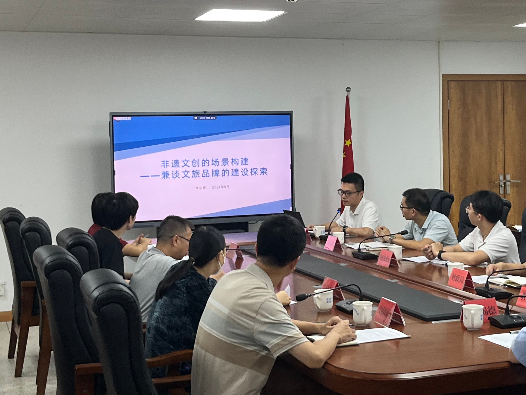 会议邀请品牌建设专家库成员——汕职院李沫彦副教授做了题为《非遗文创的场景构建——兼谈文旅品牌的建设探索》的专题讲座。李教授从为何选择“非遗”、国家非遗保护与文旅活动观察、非遗与文旅之乡社、学校、媒体场景的构建、非遗与文旅的在地化和品牌化探索四个方面做了详细讲解。