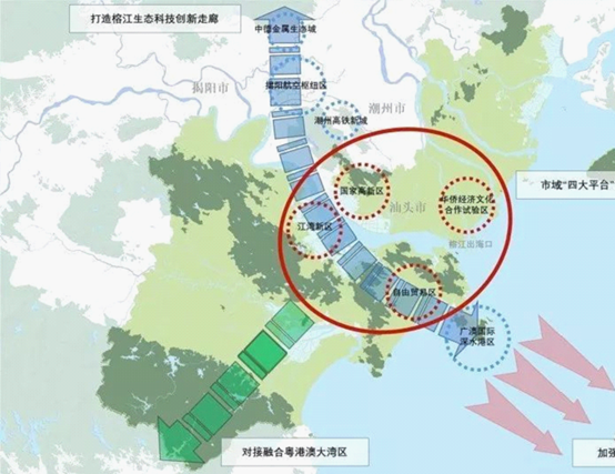 第二是“两协同”,指的是有效协同汕头城区和潮阳城区,形成资源共享、功能互补、互惠互动的发展态势。在新区为高端人才提供高端生活配套设施,形成现代服务业与新兴产业的协同圈。