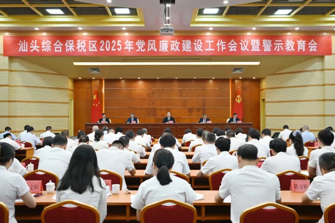7月3日,汕头综合保税区召开2025年党风廉政建设工作会议暨警示教育会,深入学习贯彻习近平总书记在二十届中央纪委四次全会上的重要讲话精神,二十届中央纪委四次全会、十三届省纪委四次全会、十二届市纪委五次全会精神,总结全区2024年党风廉政建设和反腐败工作,研究部署下一阶段任务。综保区党委书记、管委会主任陈春松出席会议并讲话,党委委员、纪委书记吴汉伟作题为《深入推进党风廉政建设和反腐败斗争为汕头综保区高水平开放高质量发展提供坚强政治保障》的工作报告。