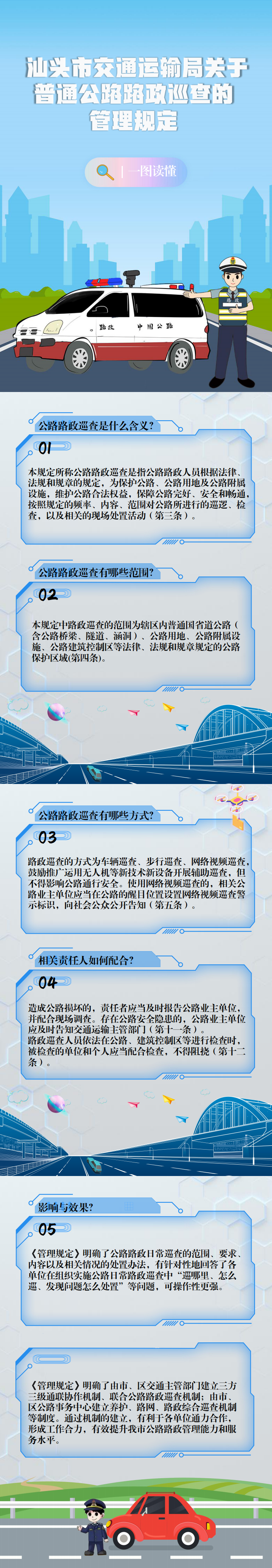 政策原文阅读请点击:汕头市交通运输局关于印发《汕头市交通运输局关于普通公路路政巡查的管理办法(试行)》的通知 (shantou.gov.cn)