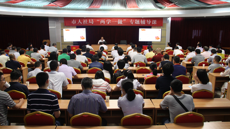 为推动“学党章党规、学系列讲话,做合格党员”学习教育扎实开展,5月6日下午,市人社局邀请市委党校田慧武副教授讲授《认真学习党章,严格遵守党章》的“两学一做”专题辅导课。局领导、局机关各科室及所属各有关单位党员干部聆听了报告。会议由局党组成员、副调研员袁榜丛主持。