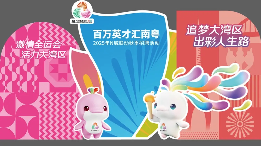 第十五届全国运动会启动的步伐越来越近,我们也将在招聘会现场拉满“十五运”的氛围感,让参会的陕西学子随时能感受到盛会的临近。全运会吉祥物“喜洋洋”和“乐融融”笑意盈盈,恭候您的到来,与您亲密合影;设置“十五运”大型立式展板,您可以拍照打卡,先行参与“十五运”进程,感受运动活力激情。在这里,每一次快门都不只是打卡,而是您与广东、您与全运会的并肩同行之约。