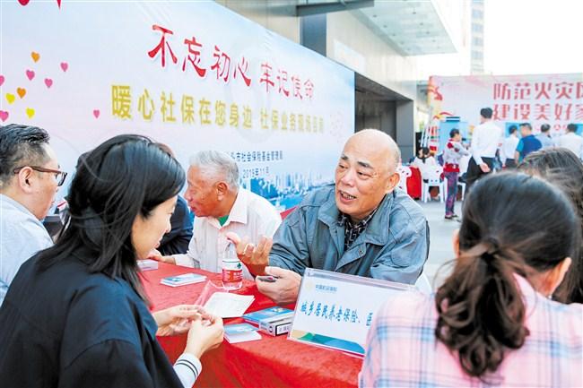 本报讯 (记者陈史摄影报道)6日上午,市社保局及各分局在全市范围内统一举行主题为“‘不忘初心、牢记使命’暖心社保在您身边”社保业务现场咨询活动,与市民面对面交流“社保热点”,宣传讲解社保惠民政策和便民举措。