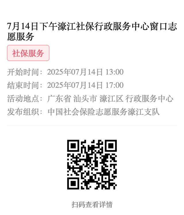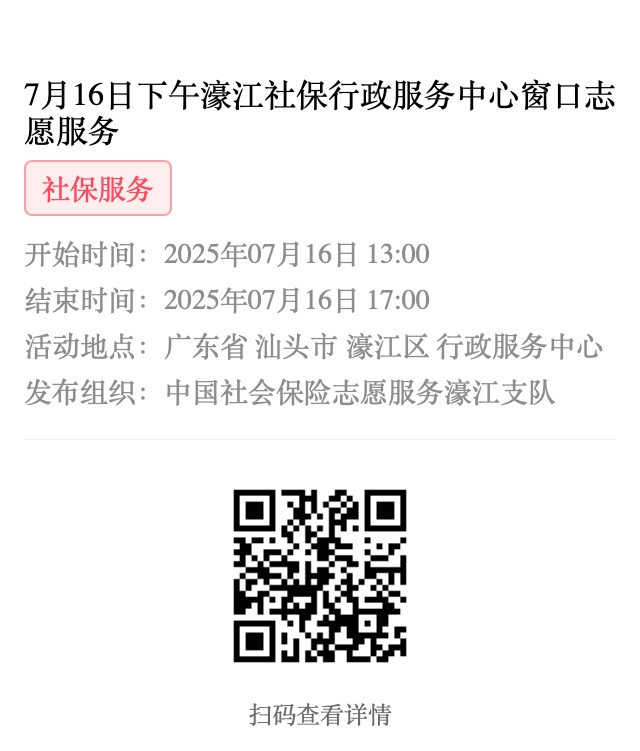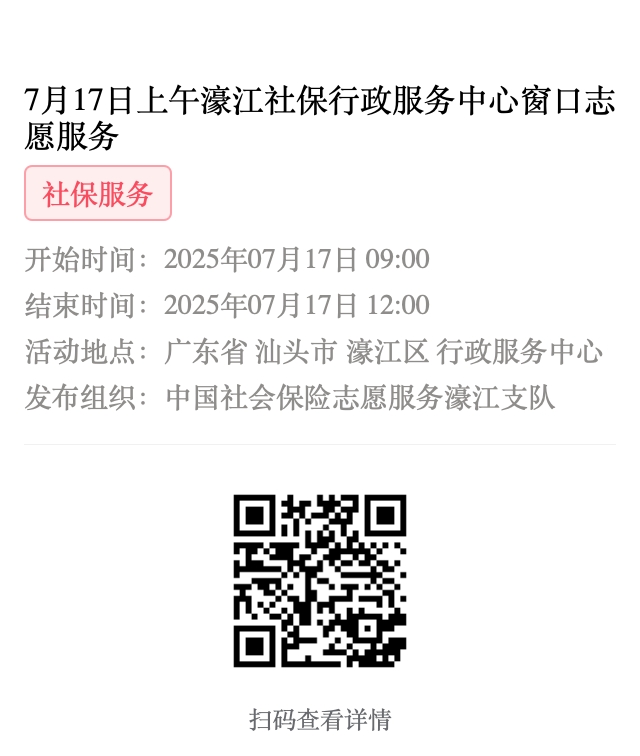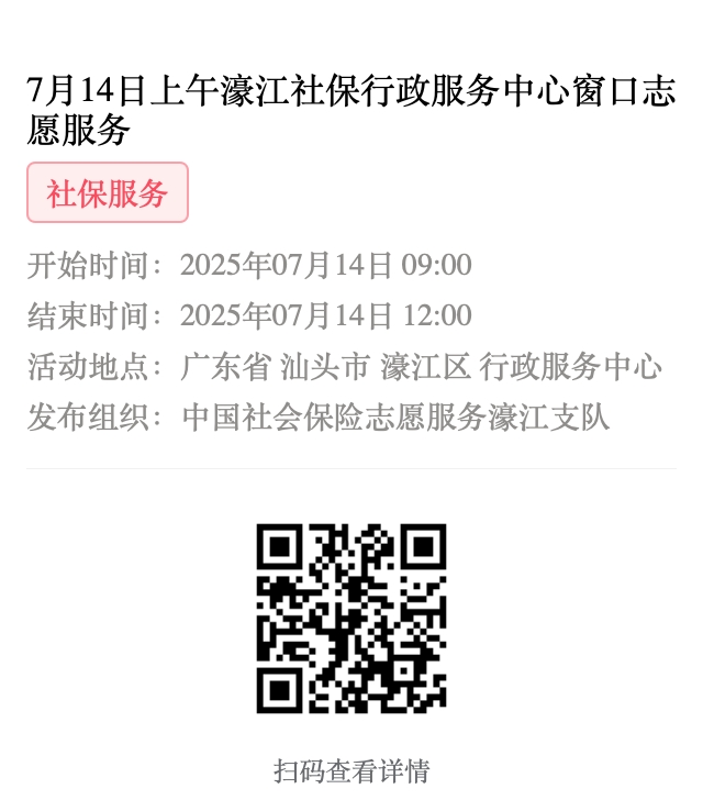 2025年7月14日至2025年7月18日市社保局濠江分局驻行政服务中心窗口志愿服务活动,需要每一个可爱的你参与!