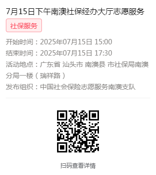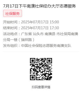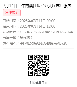 2025年7月14日至7月18日市社保局南澳分局大厅志愿服务活动,需要每一个可爱的你参与!