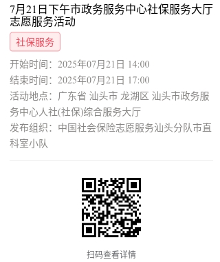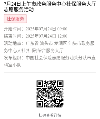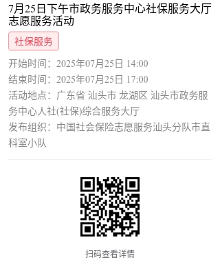第一步:加入“中国社会保险志愿服务汕头分队”或下属各支队