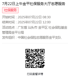 2025年7月21日至7月25日市社保局金平分局大厅志愿服务活动,需要每一个可爱的你参与!