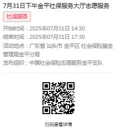 2025年7月28日至8月1日市社保局金平分局大厅志愿服务活动,需要每一个可爱的你参与!