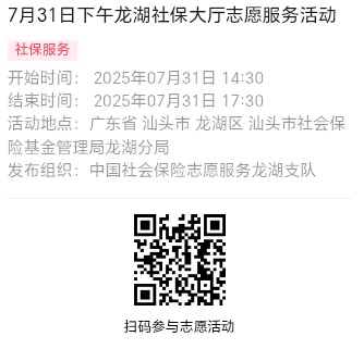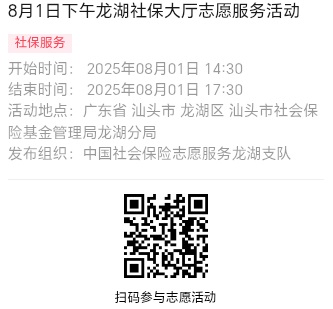 2025年7月28日至2025年8月1日市社保局龙湖分局大厅志愿服务活动,需要每一个可爱的你参与!