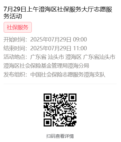 2025年7月28日至8月1日市社保局澄海分局大厅志愿服务活动,需要每一个可爱的你参与!