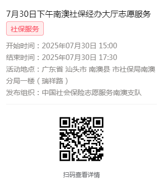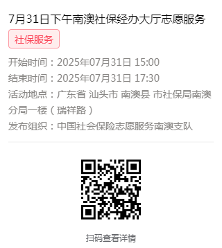 2025年7月28日至8月1日市社保局南澳分局大厅志愿服务活动,需要每一个可爱的你参与!