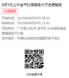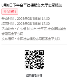 2025年8月4日至8月8日市社保局金平分局大厅志愿服务活动,需要每一个可爱的你参与!
