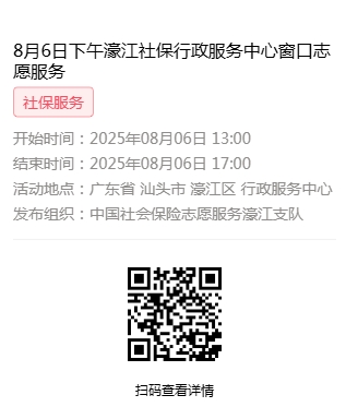 2025年8月4日至2025年8月8日市社保局濠江分局驻行政服务中心窗口志愿服务活动,需要每一个可爱的你参与!