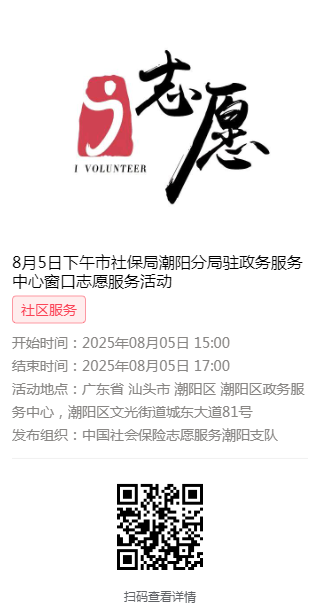 2025年8月4日至8月8日市社保局潮阳分局驻政务服务中心窗口志愿服务活动,需要每一个可爱的你参与!