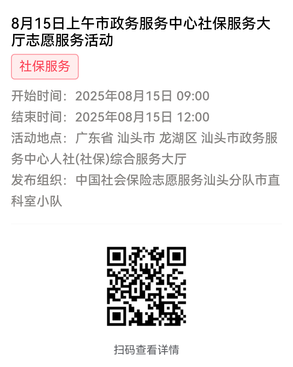 第一步:加入“中国社会保险志愿服务汕头分队”或下属各支队