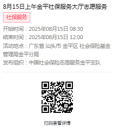 2025年8月11日至8月15日市社保局金平分局大厅志愿服务活动,需要每一个可爱的你参与!